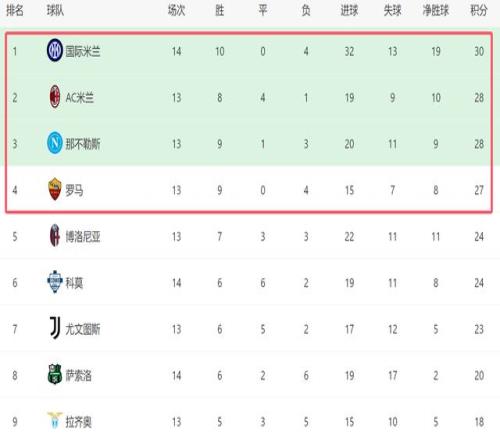 此役过后,意甲榜首又再度易主,国米在多赛一场的情况下,反超那不勒斯和AC米兰,在意甲积分榜登顶。前14轮过后,国米拿到10场胜利,在多线作战的情况下,这个成绩难能可贵。遗憾的是,赛季至今国米在意甲输给了尤文、那不勒斯和AC米兰(另外一场输给乌迪内斯),在强强对话当中,齐沃没能证明自己,如果国米本赛季想夺冠,还需要在和强队的比赛中提升表现。